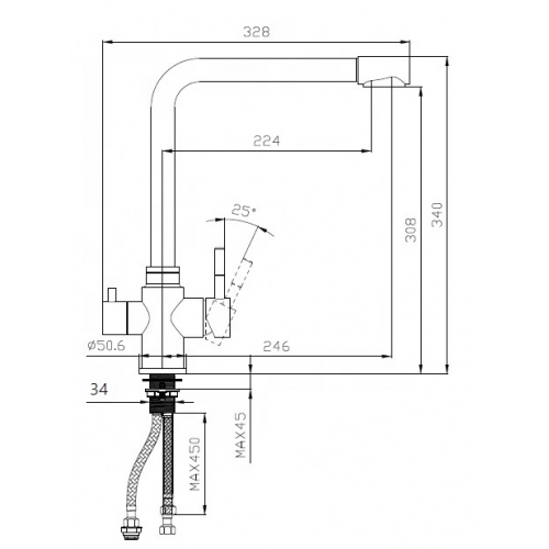 - flexibilis csőcsatlakozások mérete: hideg és meleg víz - 3/8" (hollander), RO víz - 1/4" (hollander)