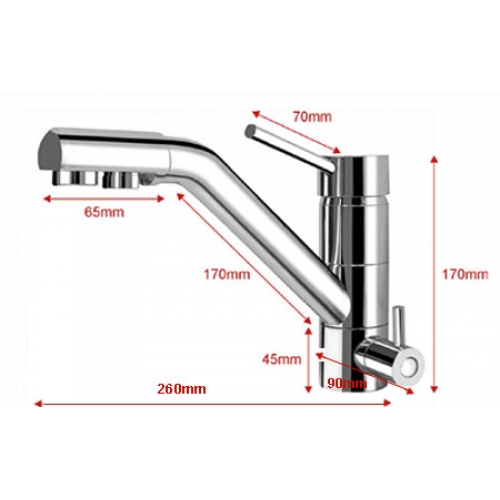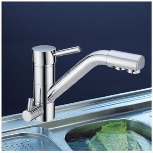 Dekoratív, háromutas (speciálisan a lágy RO vízhez + hideg és meleg csapvízhez tervezett), kerámiabetétes, konyhai csaptelep víztisztítóhoz. Alkalmazásával nem kell külön lyukat fúrni a pulton a RO (Fordított ozmózis elvén működő) háztartási víztisztító tisztavíz csaptelepének. A meglévő konyhai csaptelep helyére kell felszerelni.