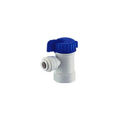 Elzárócsap (pl.: RO-132, RO-122, RO-120 típusú víztartályokhoz), QUICK tip. gyors-csőcsatlakozással, könyök kialakítással, 6mm-es, műanyag csővezetékhez.