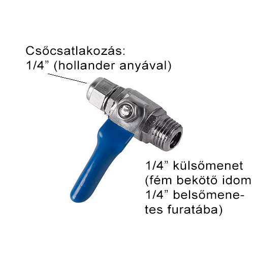Csatlakozási méretek: 1/4" MT külsőmenet x 1/4" cső