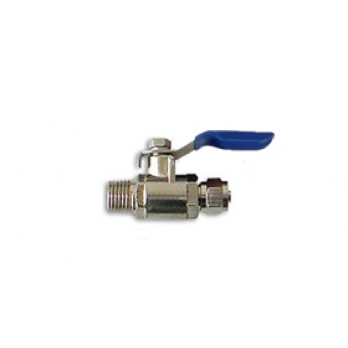 RO (fordított ozmózis) vagy más technológiájú víztisztító berendezésekhez főelzáró golyós csap hollanderes csőcsatlakozással, 6 mm-es, műanyag csővezetékhez, illetve furathoz való.