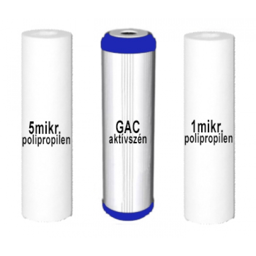 3 db-os víztisztító előszűrőbetét szett hagyományos felépítésű RO (Fordított ozmózis) háztartási víztisztítókhoz.