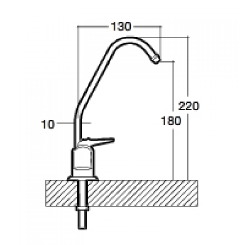 Pultra (a mosogatótálca mellé) szerelhető, nyomógombos, egyutas, kerámiabetétes csaptelep RO vagy más pult alá felszerelt víztisztítókhoz, klasszikus, döntött kivitelben.