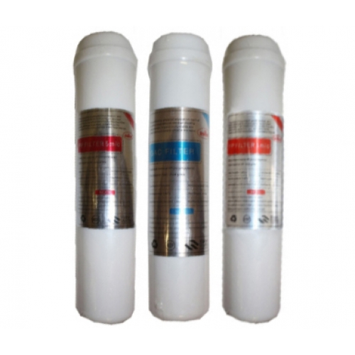 3 db-os, belsőmenetes (NPT) csatlakozású víztisztító előszűrő szett kompakt RO (Fordított ozmózis) háztartási víztisztítókhoz.