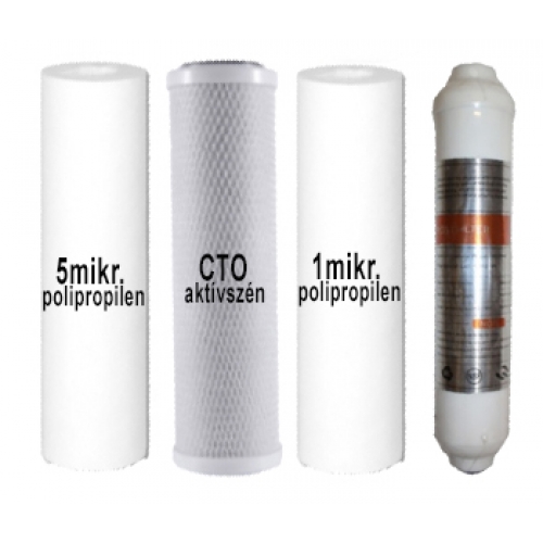 4 db-os víztisztító elő+utószűrőbetét szett hagyományos felépítésű RO (Fordított ozmózis) háztartási víztisztítókhoz.