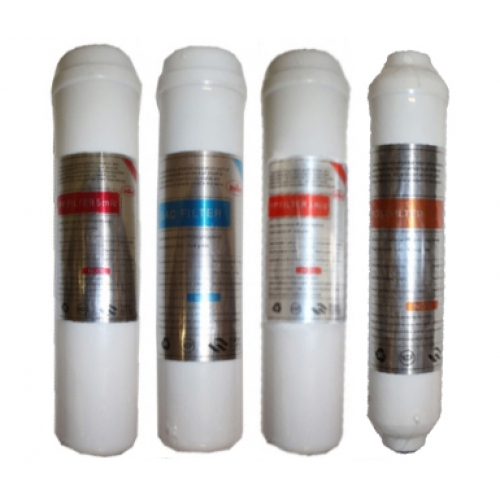 4 db-os, belsőmenetes (NPT) csatlakozású víztisztító előszűrő szett kompakt RO (Fordított ozmózis) háztartási víztisztítókhoz.