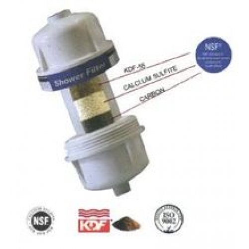 A KDF betét szűrésének hatékonyságát az alábbi töltetek segítik: aktívszén, kalcium-szulfit és 5 db fizikai szűrőréteg. A szűrőbetéten áthaladó vizet megtisztítja. A Klór és származékai 90-95%-át eltávolítja. A víznyomást jelentős mértékben nem változtatja meg. Szétcsavarva a benne lévő szűrőbetét kicserélhető, ha az elhasználódott.